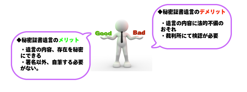 遺言の内容を記載した書面を封じた遺言書で、公証人がその存在と遺言者が書いたことを公証したもの。証人2人以上の立会いが必要。